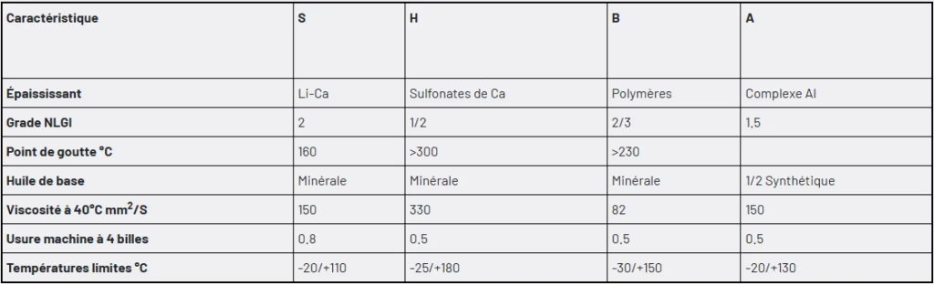 - Graisse B : graisse à savon à base de polymères sans présence de sels métalliques
