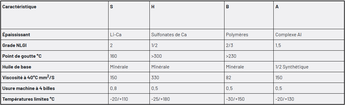 - Graisse B : graisse à savon à base de polymères sans présence de sels métalliques